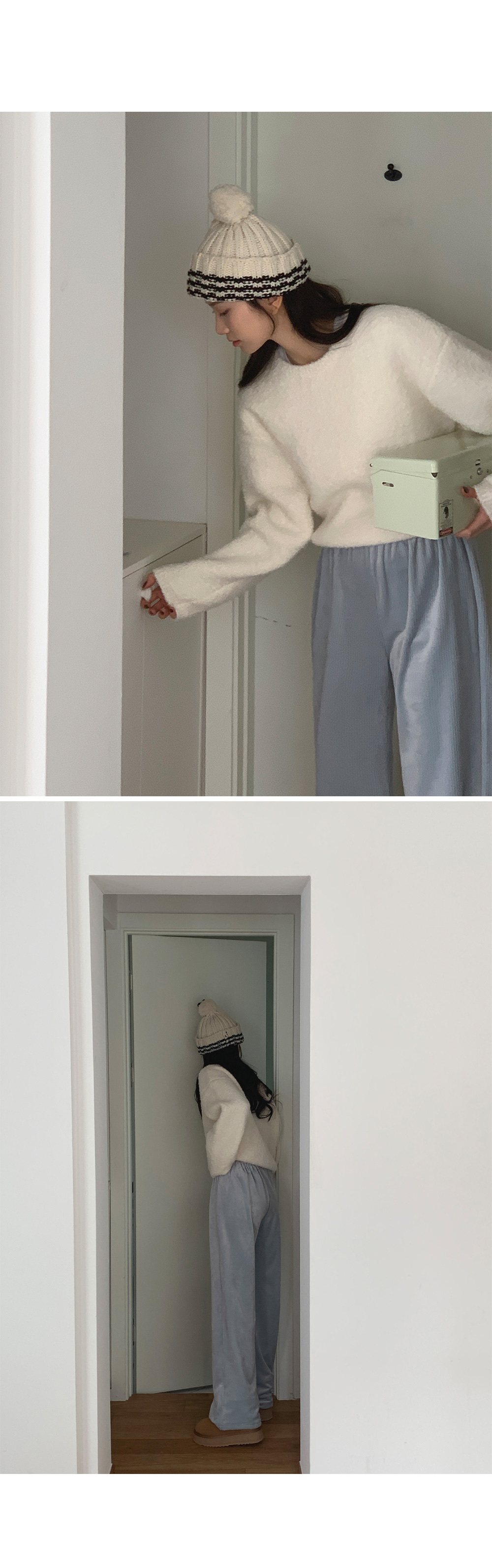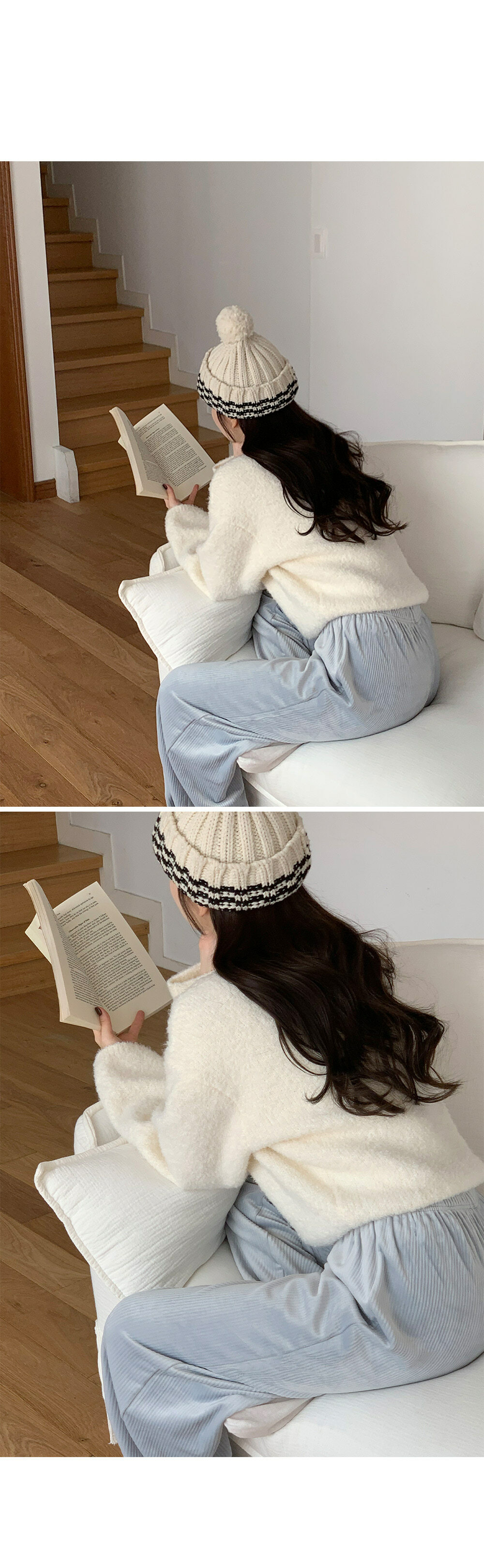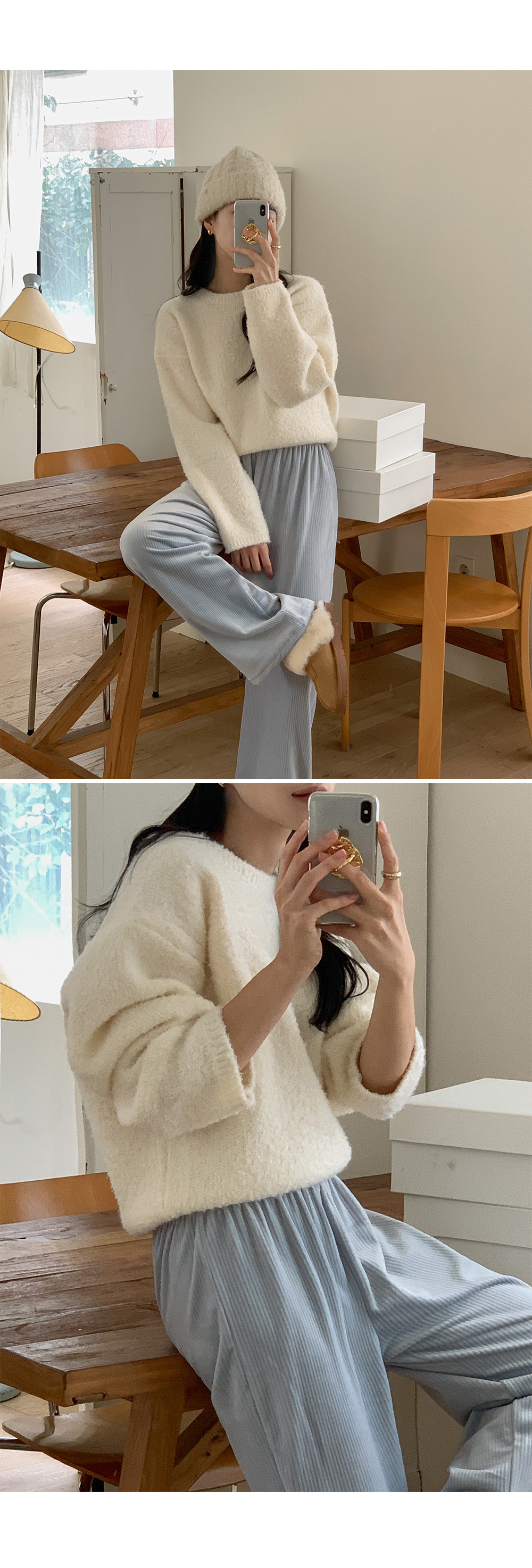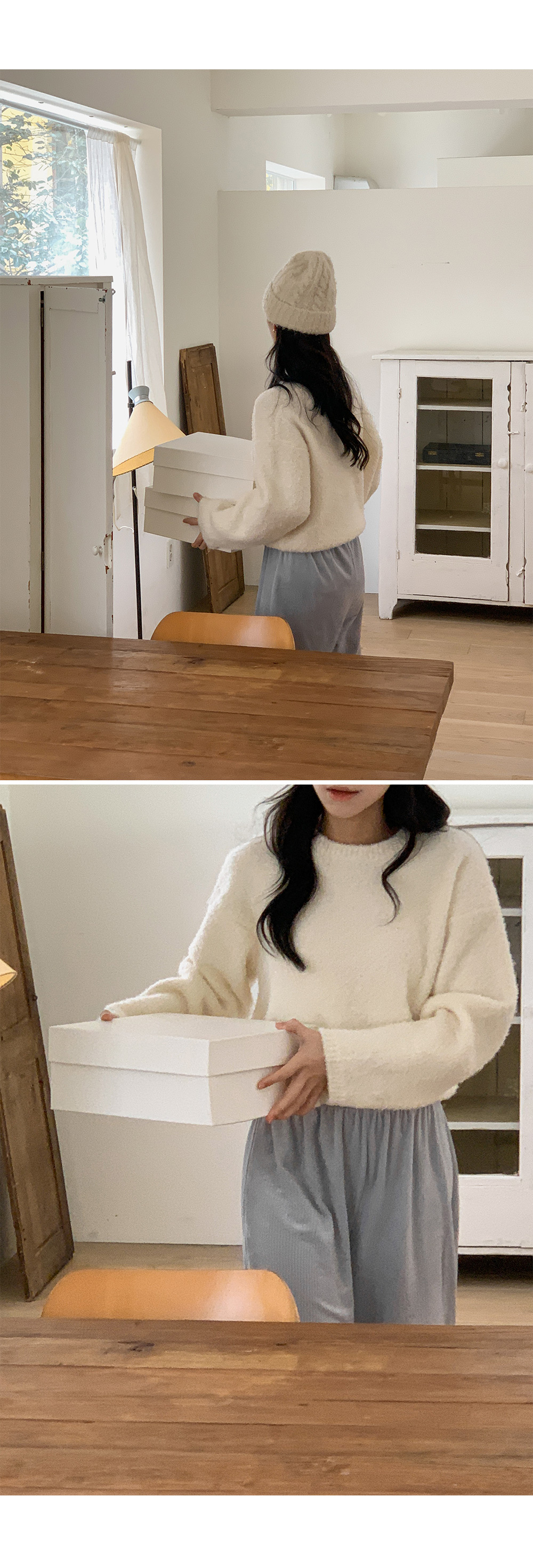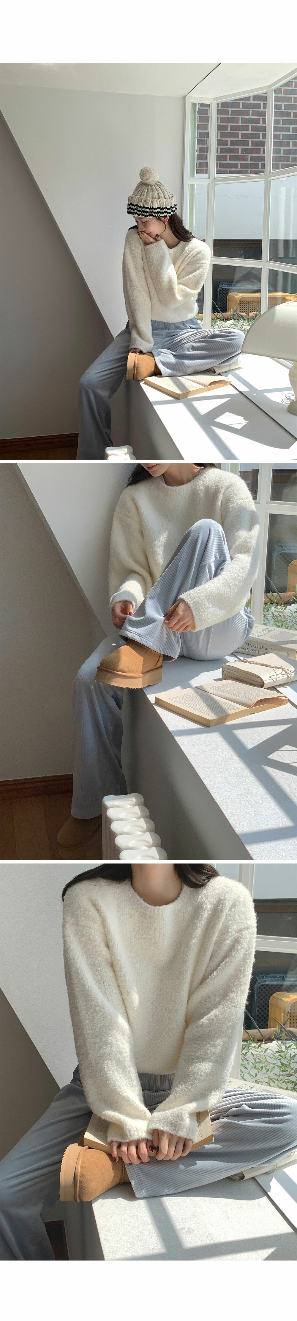 冷衫: HE947奶油 / 褲:BO1359 奶油短版
