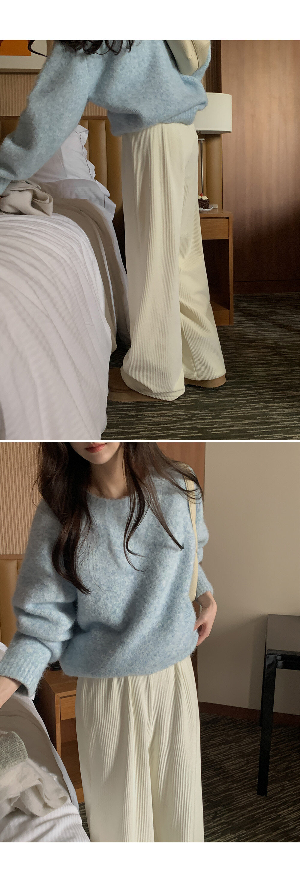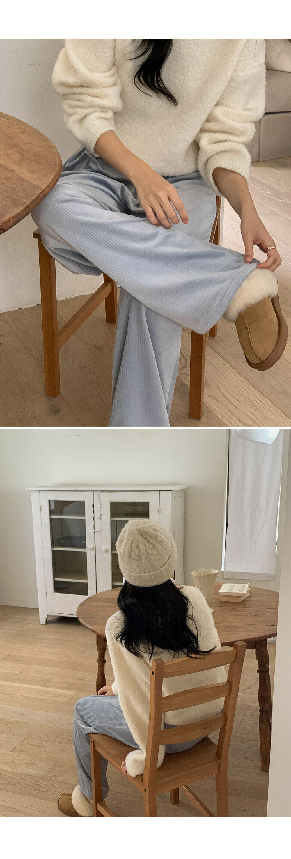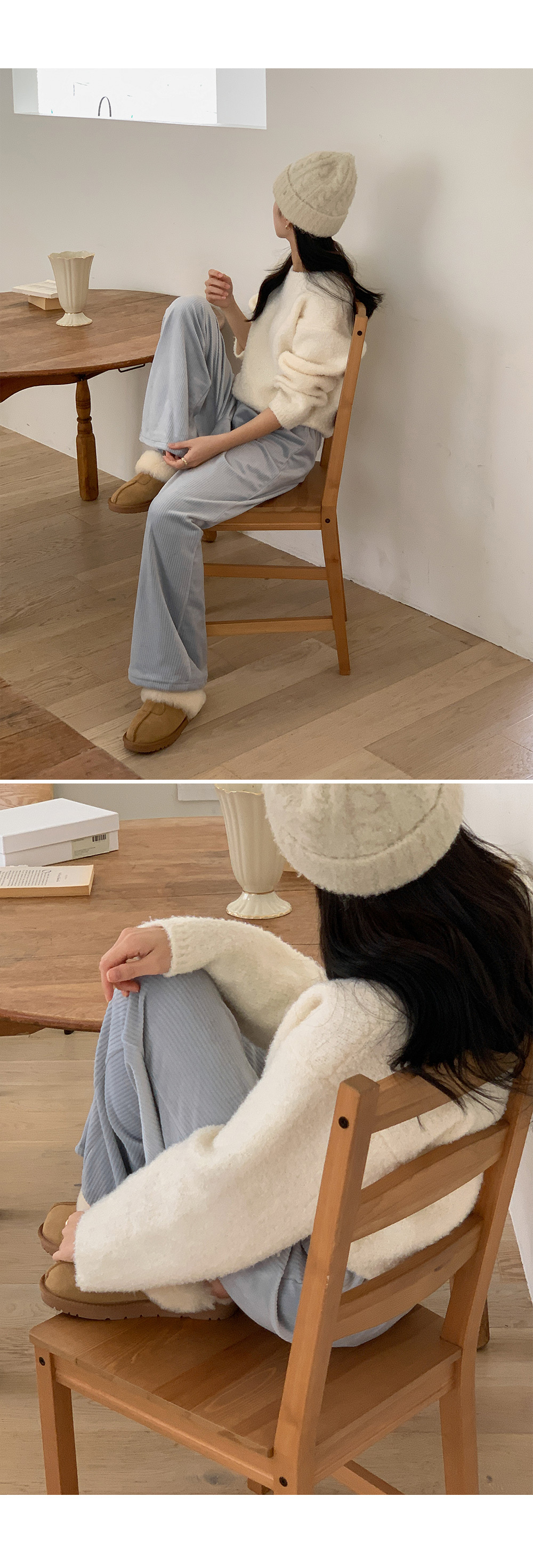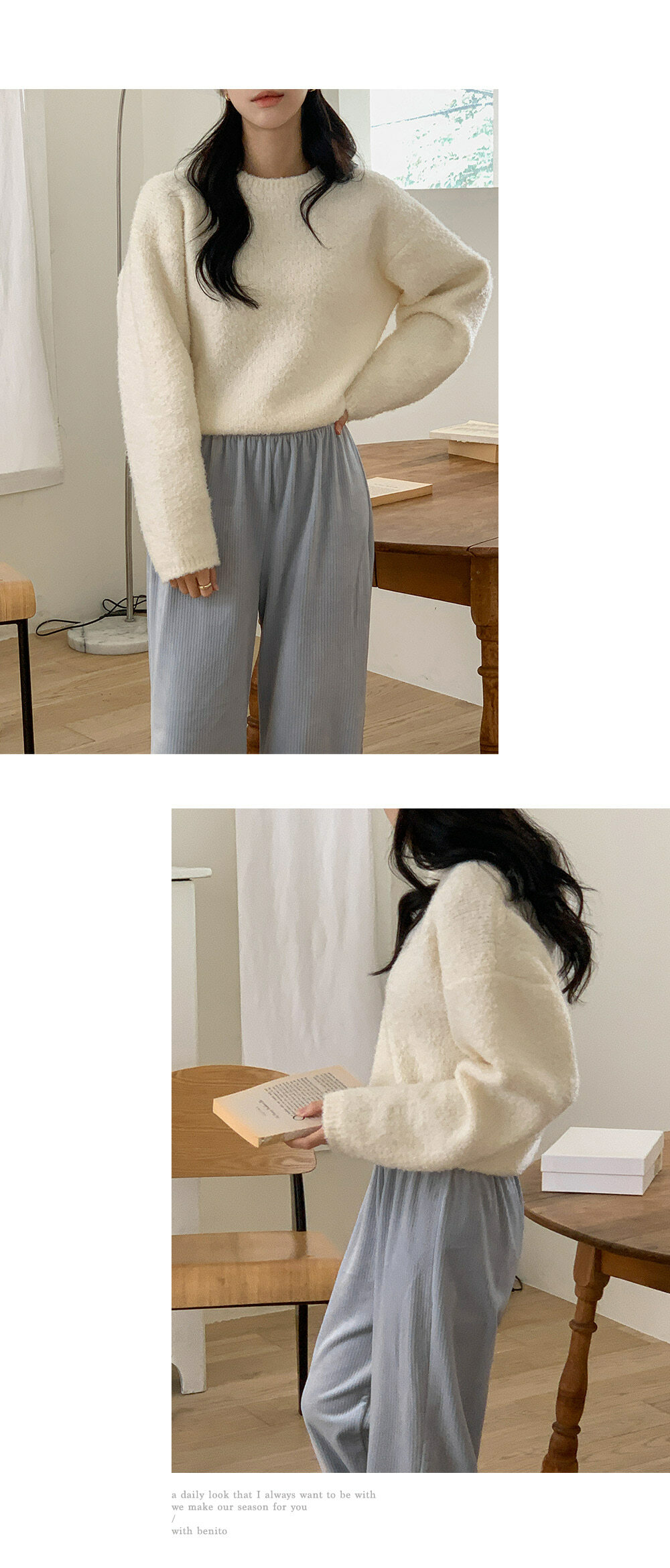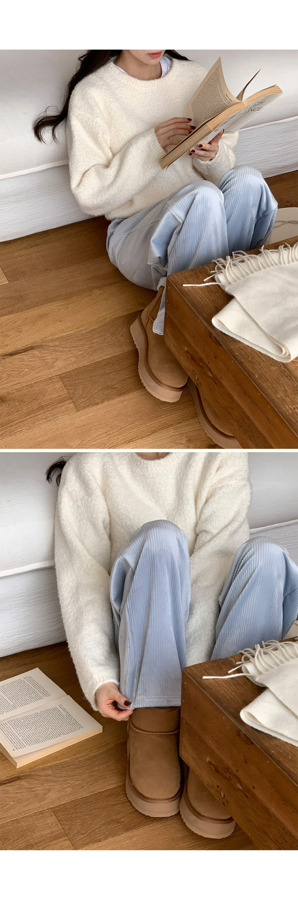 冷衫: HE947奶油 / 褲:BO1359 奶油短版