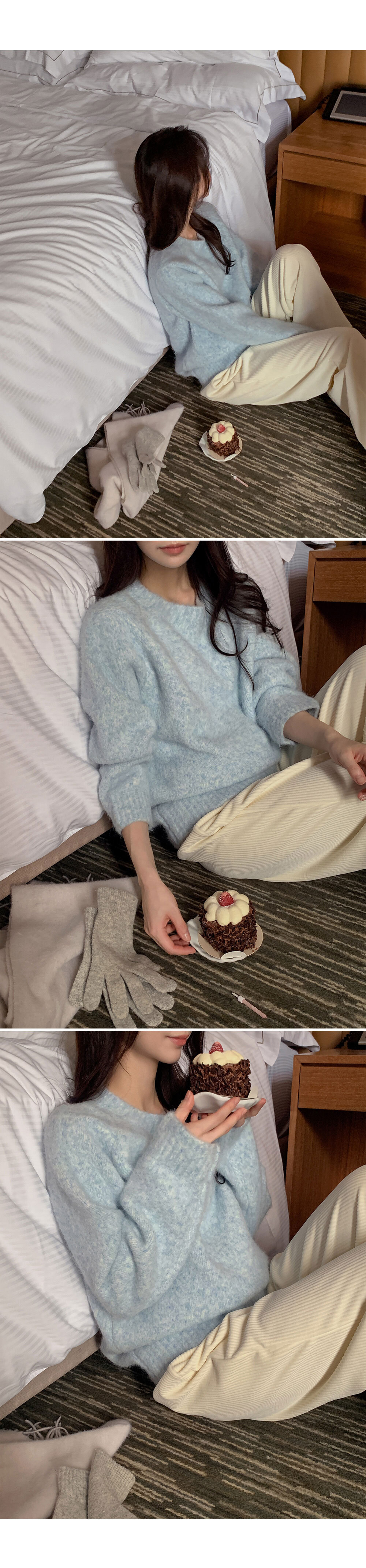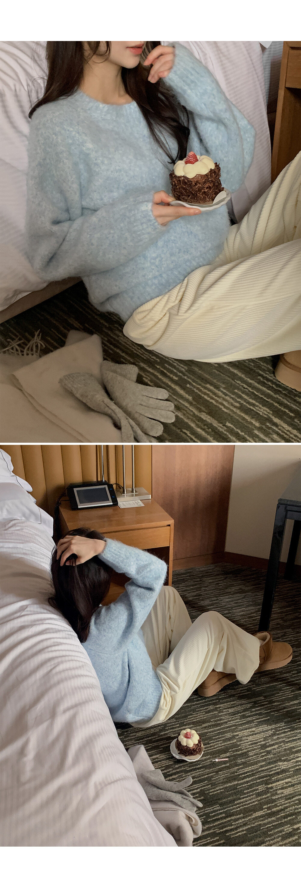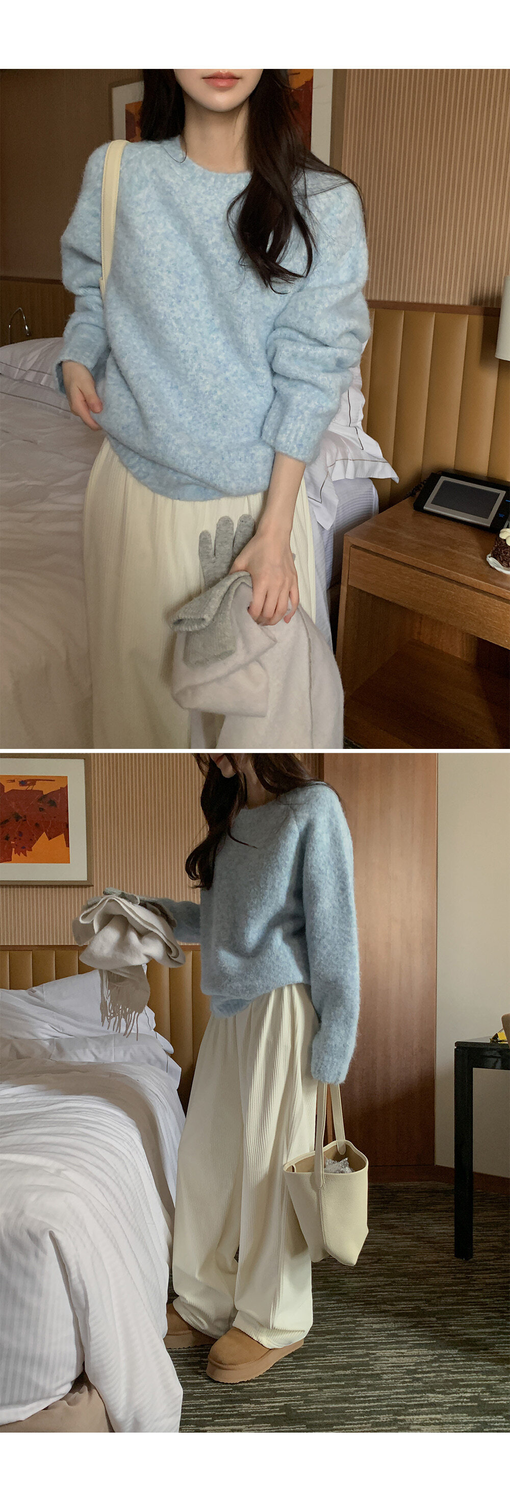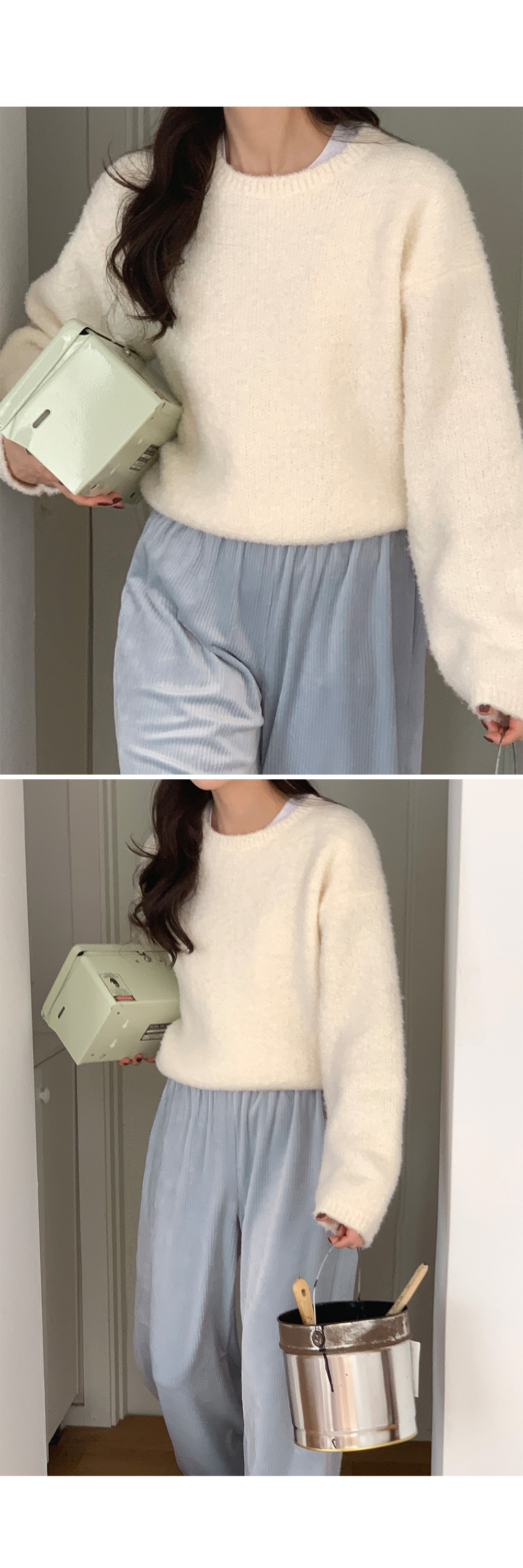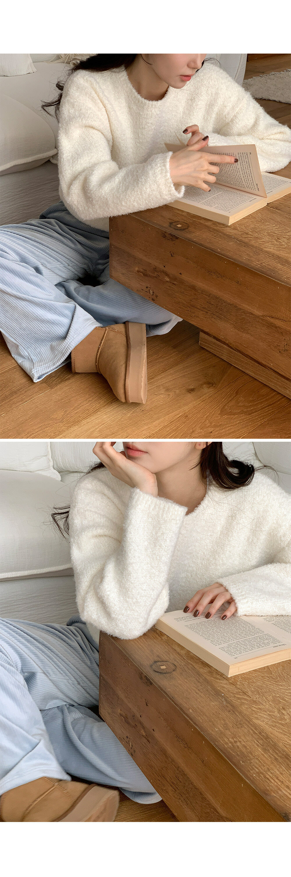 冷衫: HE947奶油 / 褲:BO1359 奶油短版