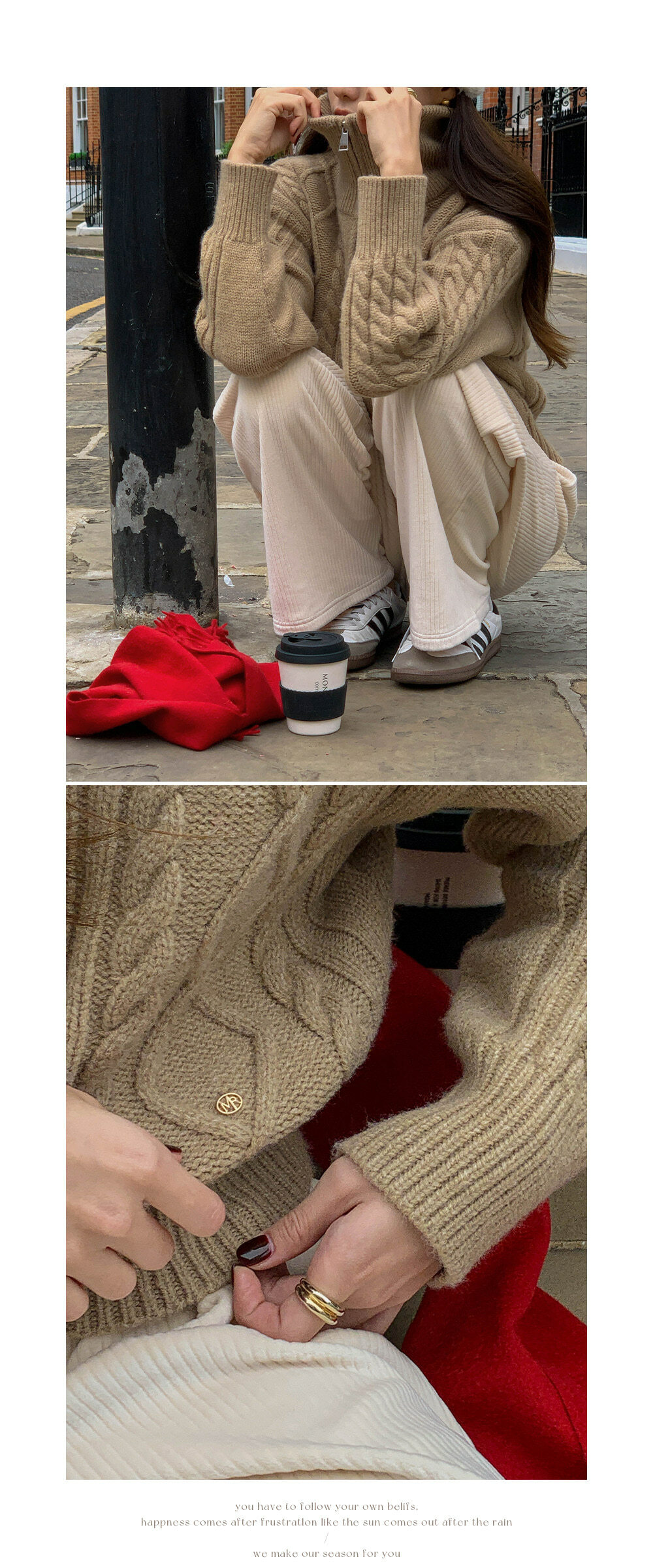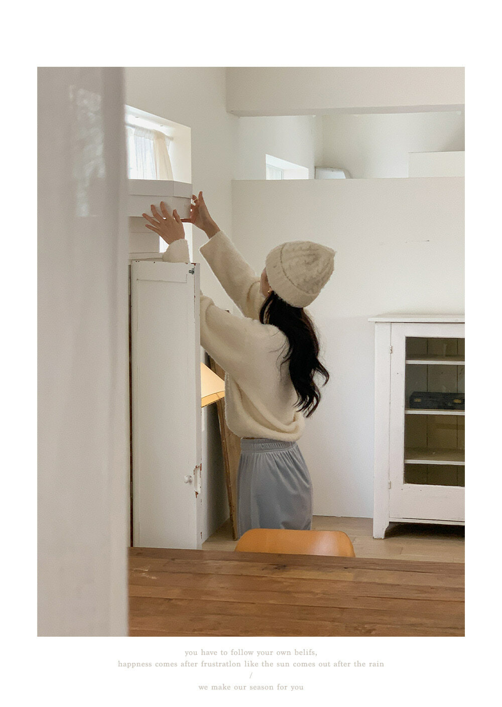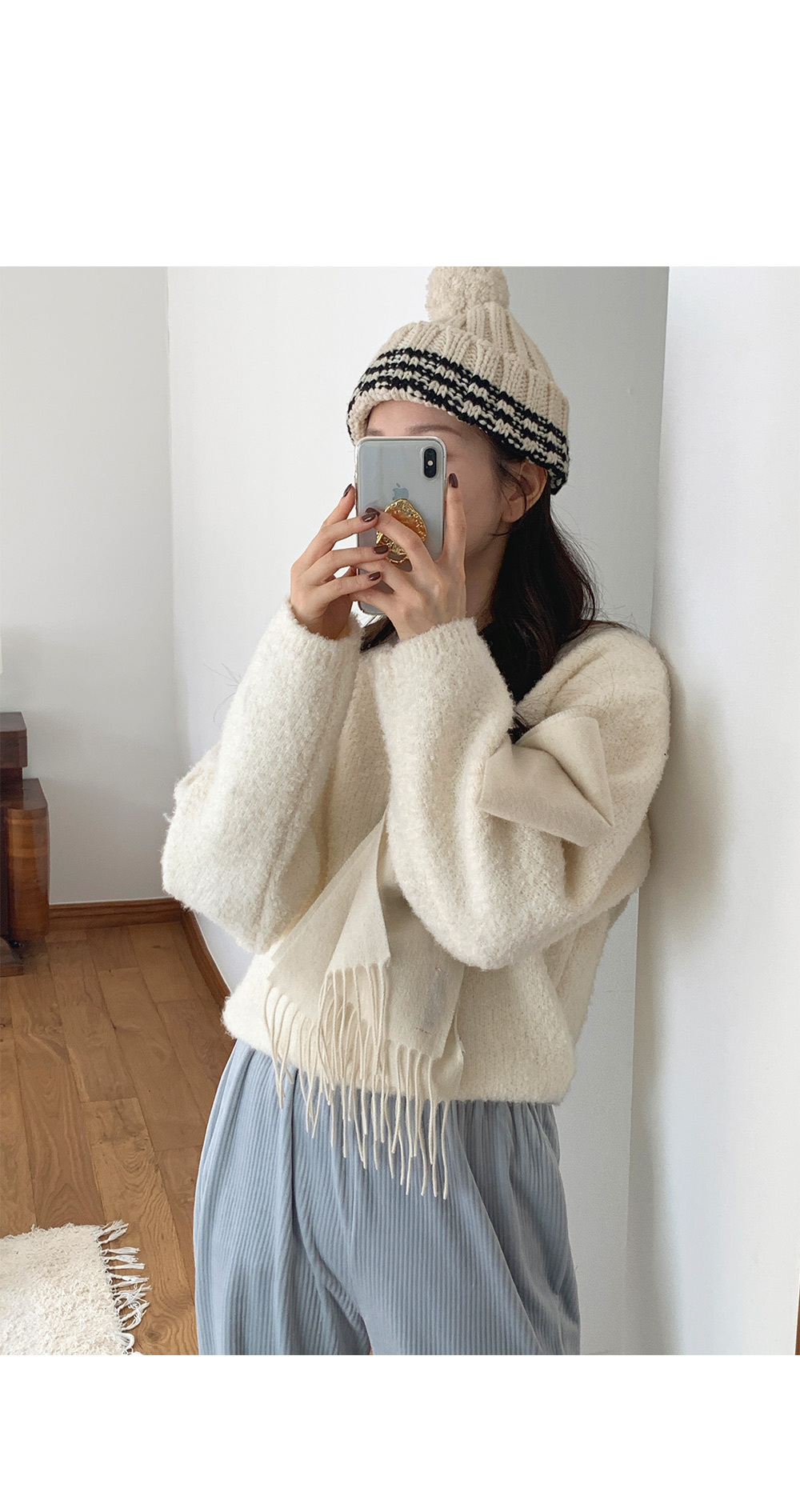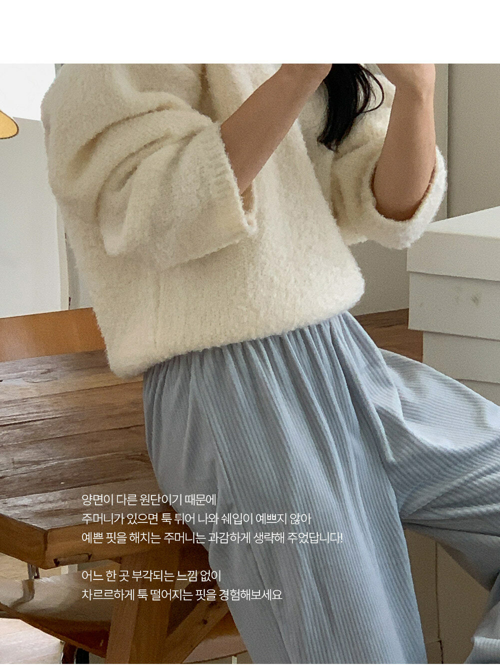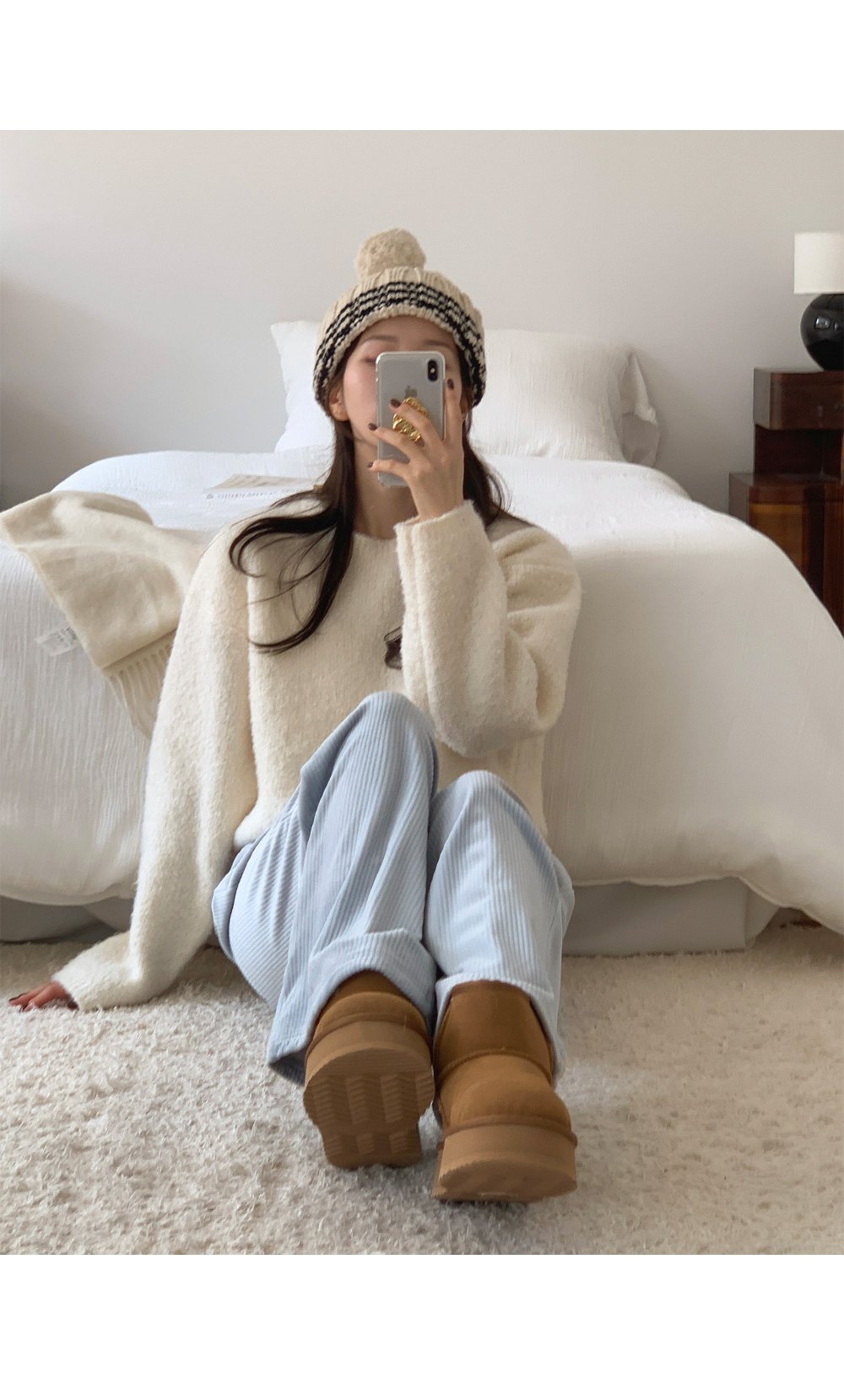 冷衫: HE947奶油 / 褲:BO1359 奶油短版