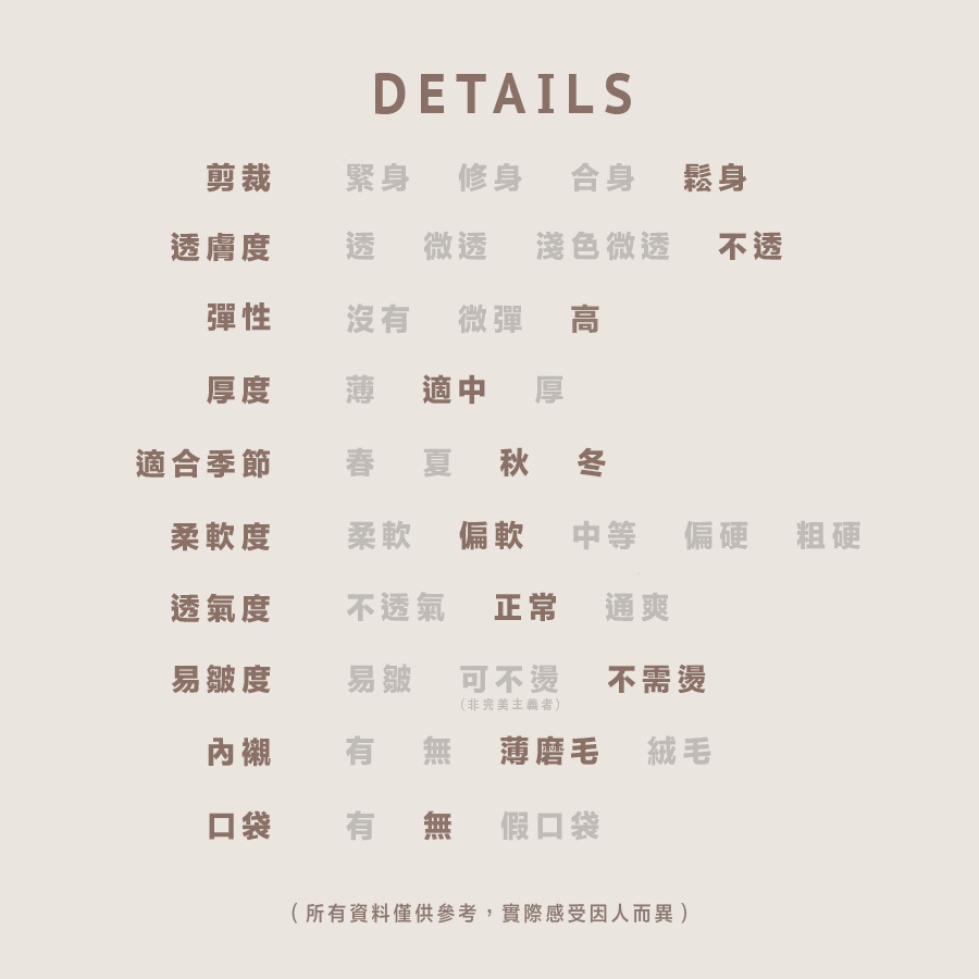 所有貨品不設退換,請一定要參考Size Chart