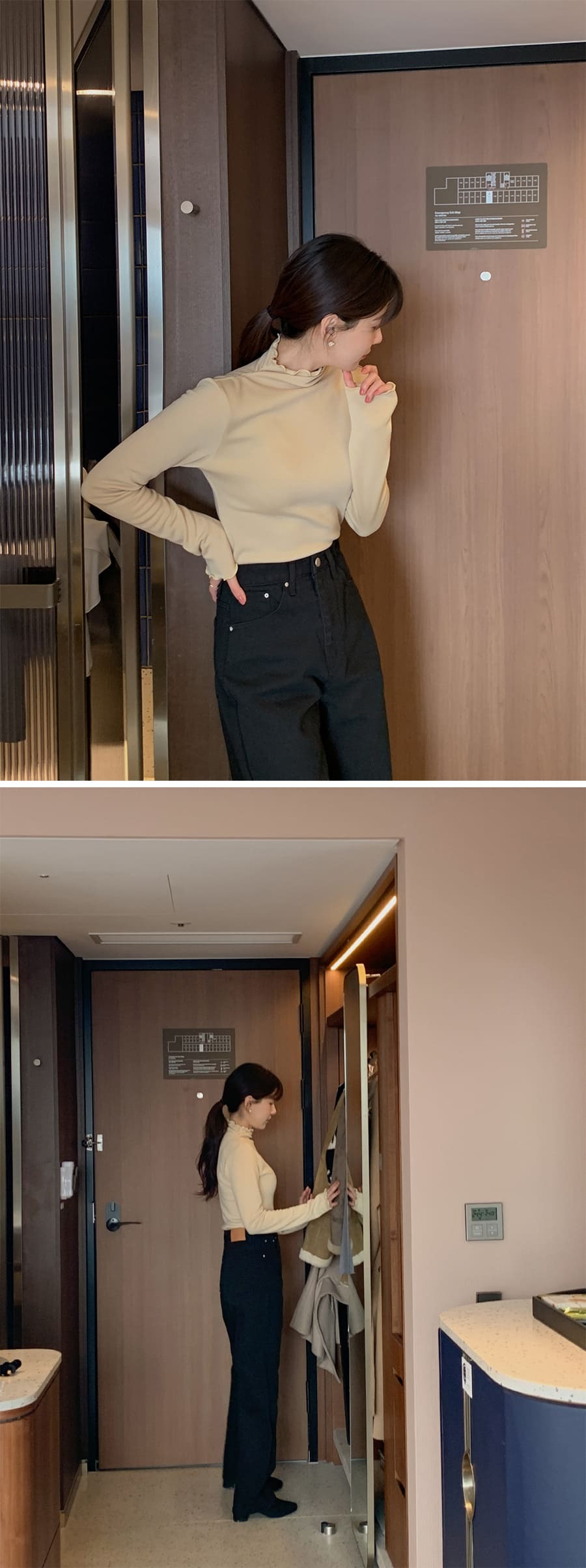 內搭薄款磨毛Tee+外搭大褸