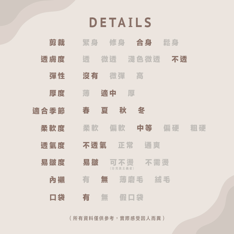 所有貨品不設退換,請一定要參考尺寸表
