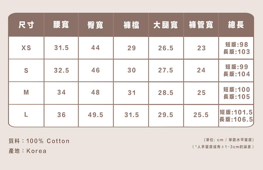 呢條有分短/長版、XS-L size
