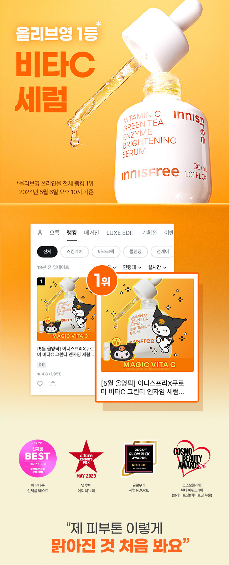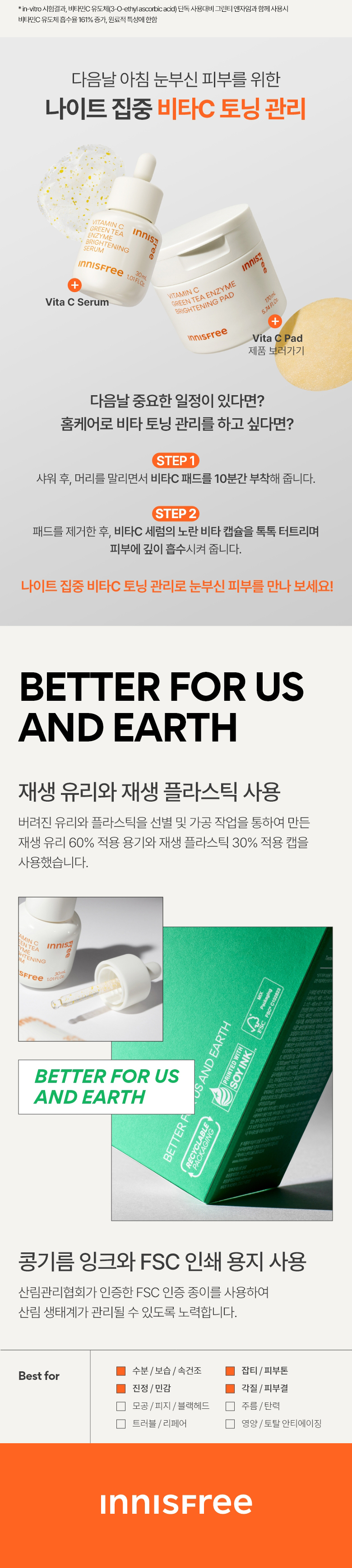 (1+1優惠)【Innisfree】維他命C綠茶酵素亮白精華 Vitamin C Green Tea Enzyme Brightening Serum 30ml+30ml (OY147)
