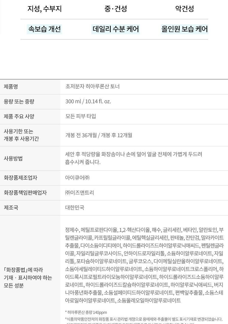 【Isntree】超低分子透明質酸爽膚水 Ultra-Low Molecular Hyaluronic Acid Toner 300ml (OY488)