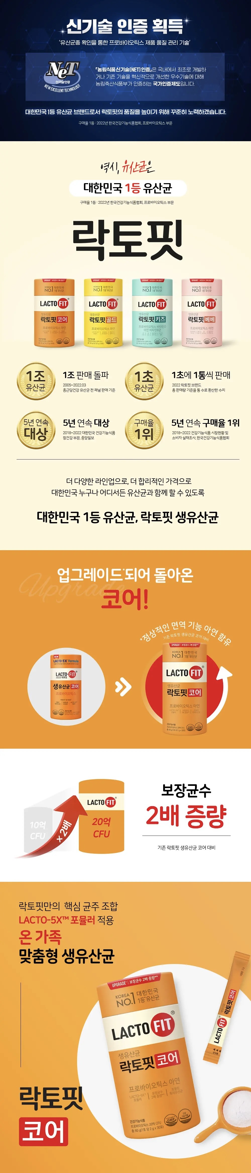 【Lacto-fit】黃金腸胃健康乳酸菌 (增強版) Probiotics Core 30條裝 (1個月份量) (OY099)