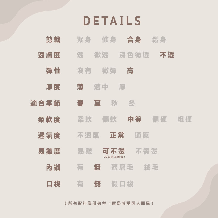 166cm/48kg - 米色 示範中