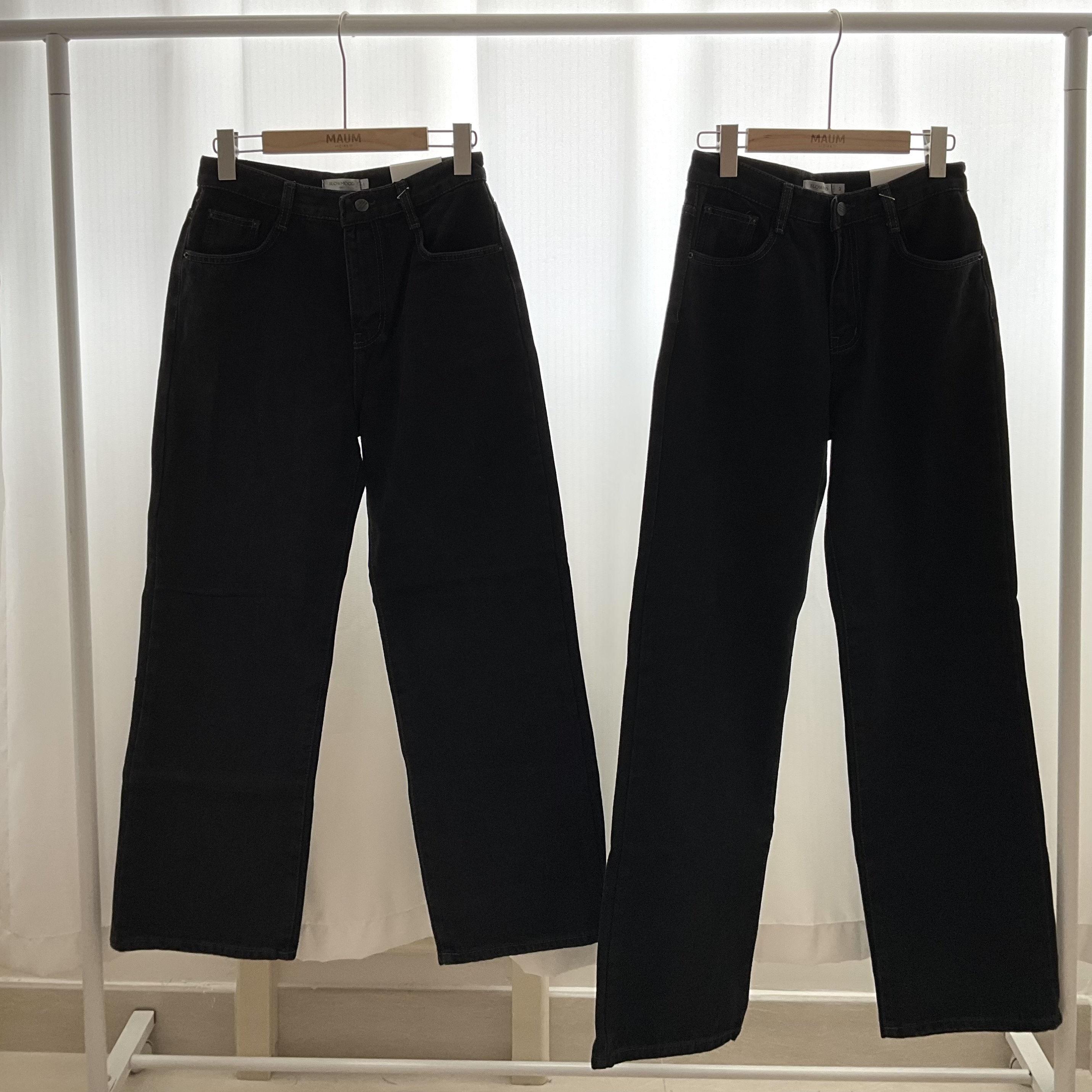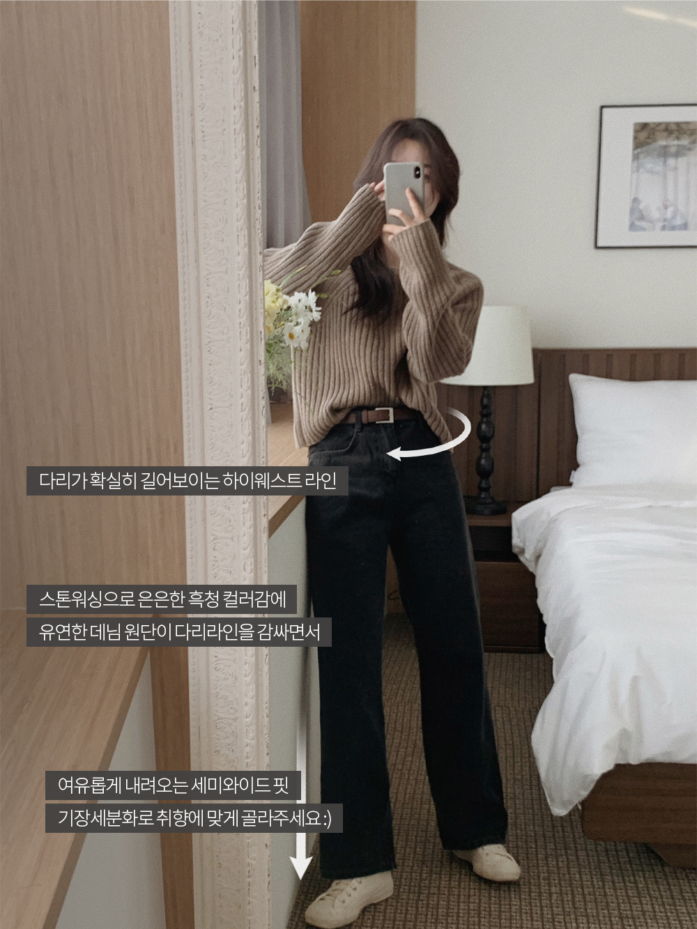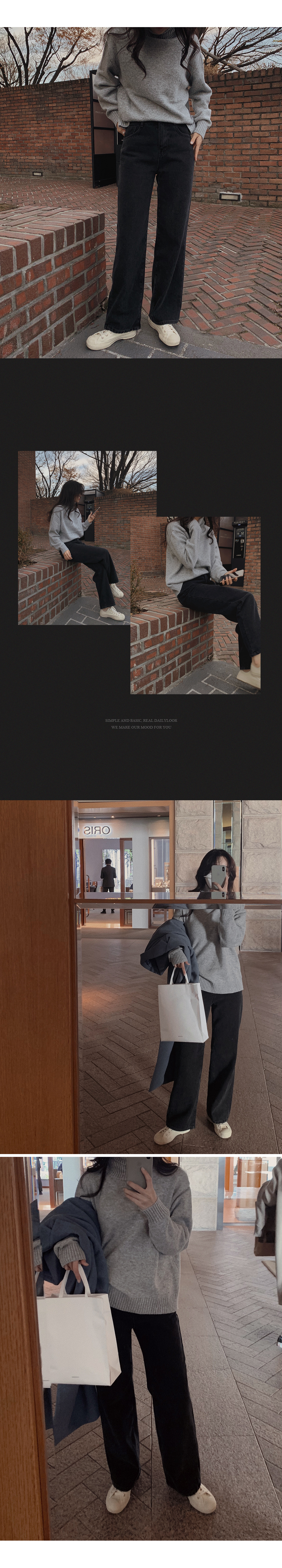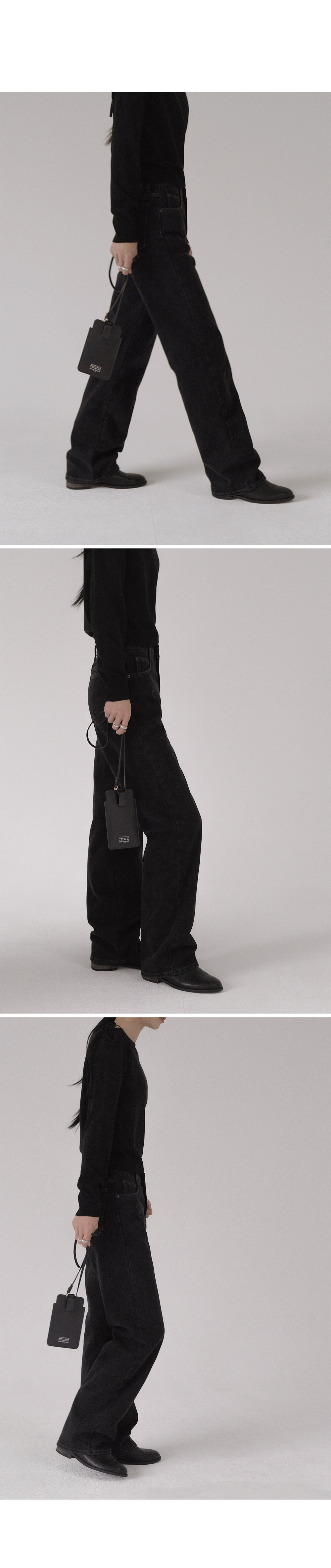 比起軟身既布料,挺身既牛仔落地褲