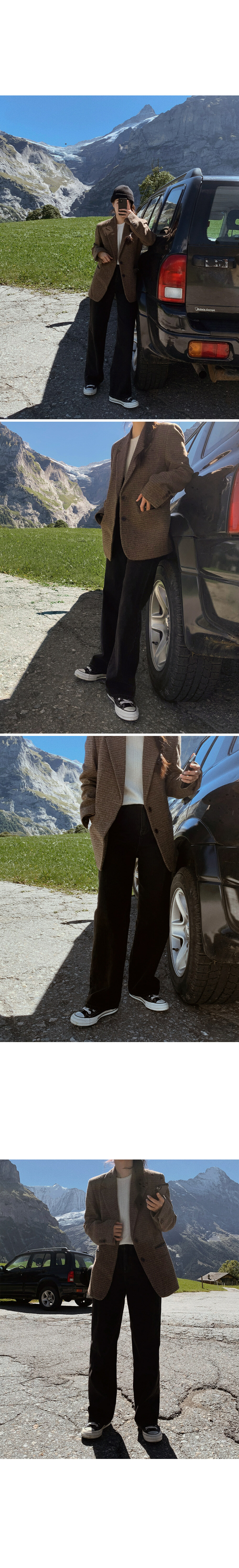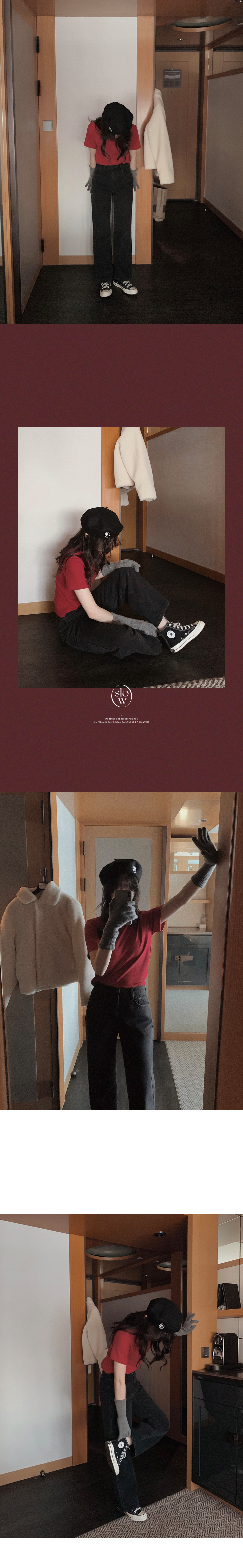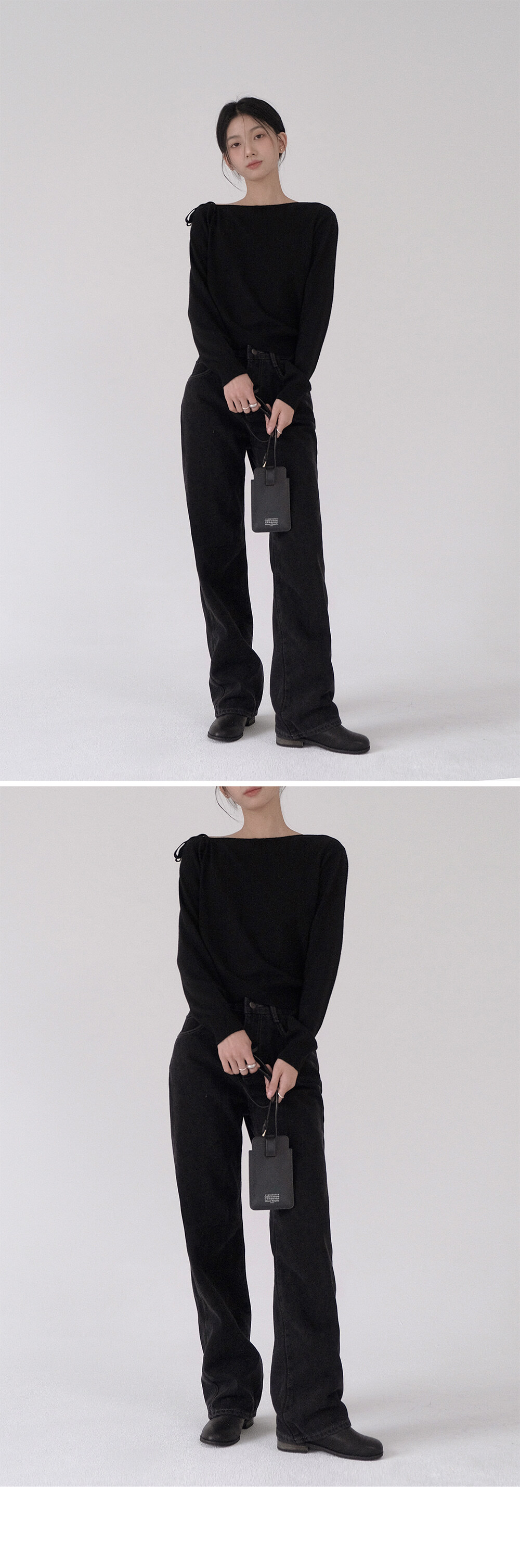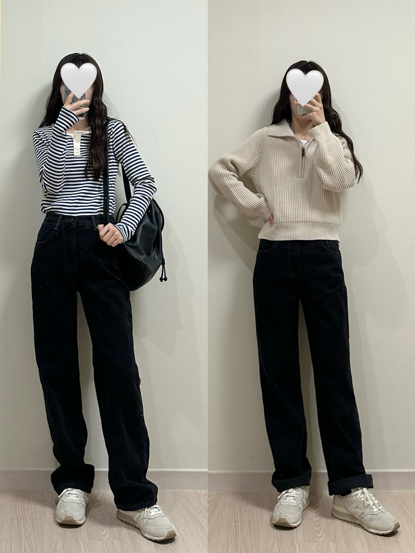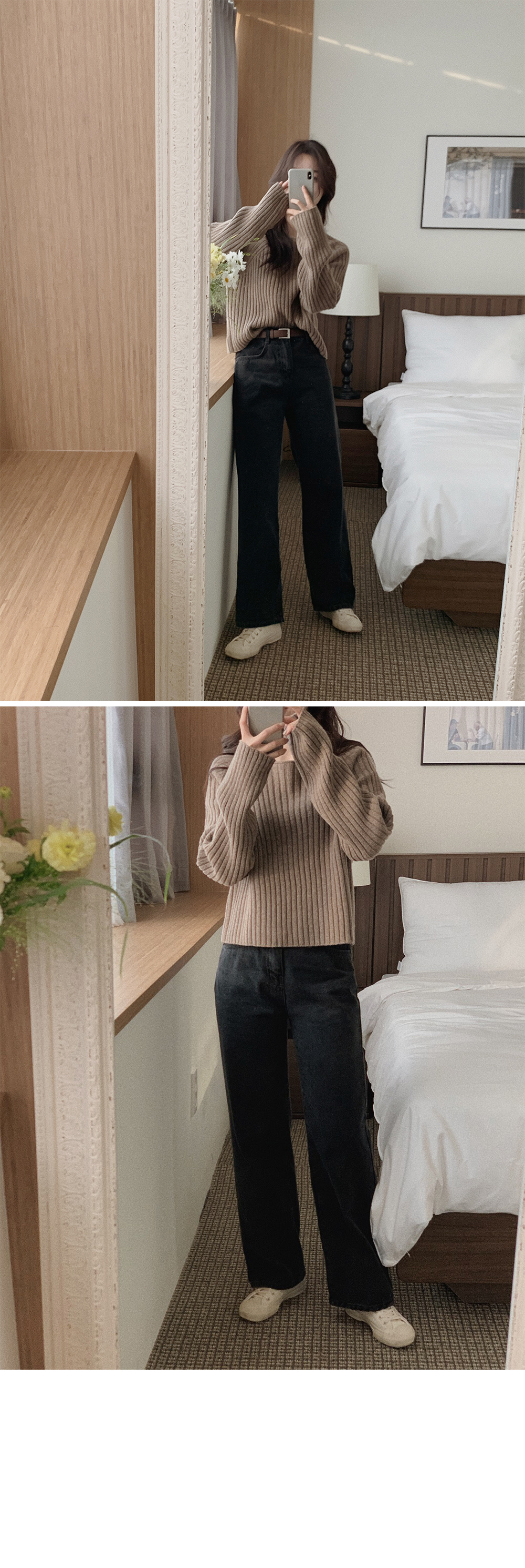 比起軟身既布料,挺身既牛仔落地褲