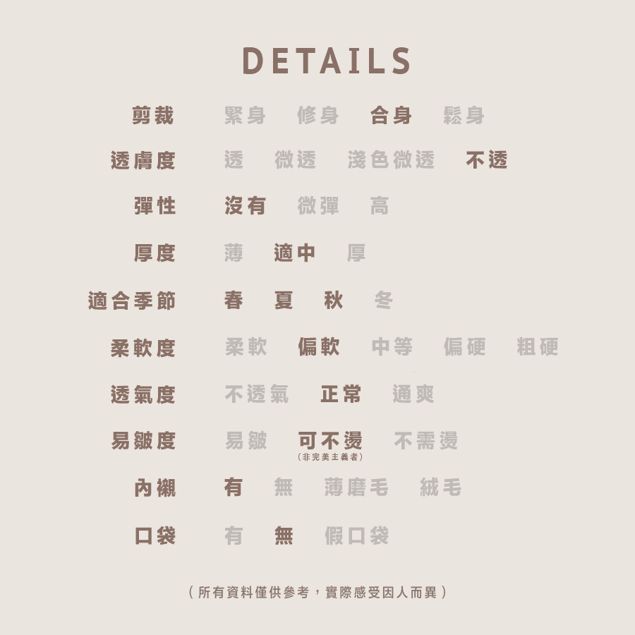 所有貨品不設退換,請一定要參考Size Chart