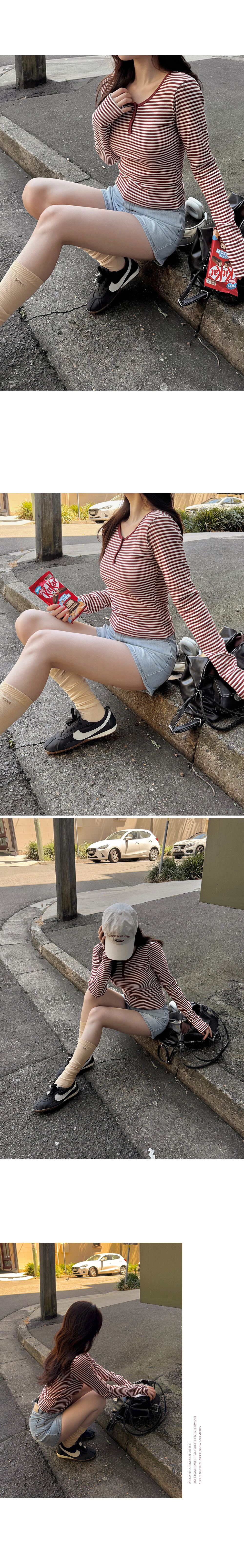 168cm/Top 55(S) size/26" - Brick Ivory 磚紅+米白(條紋)