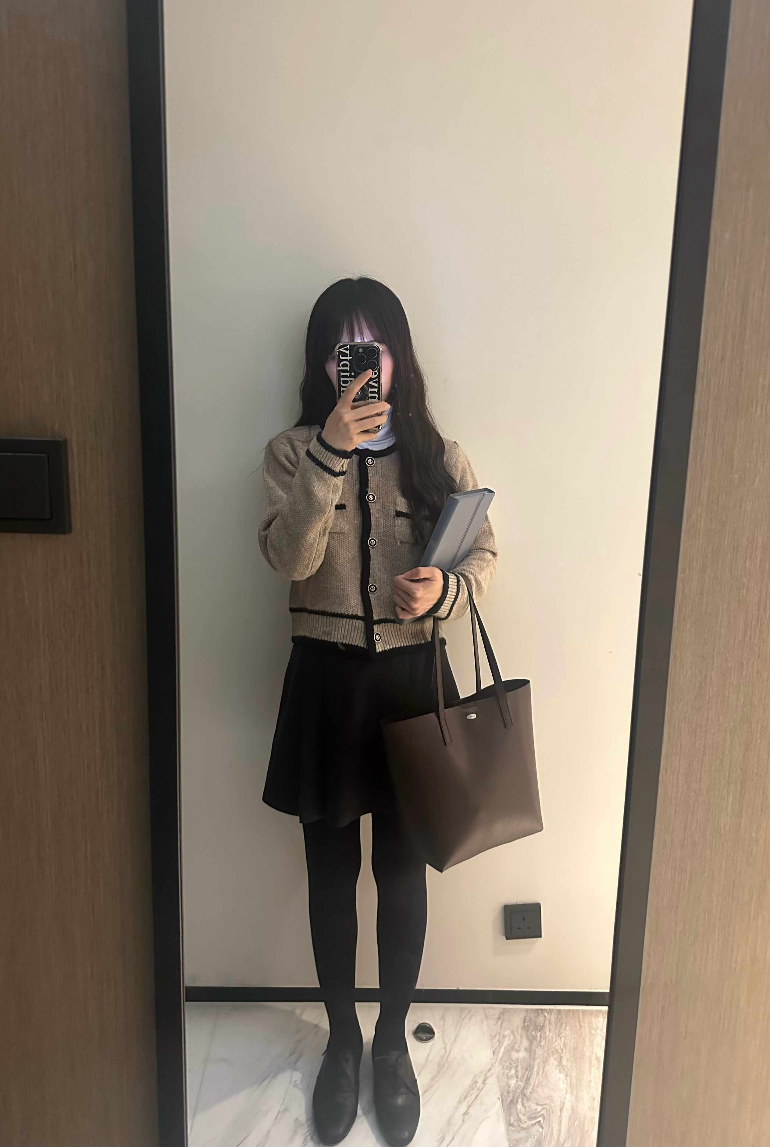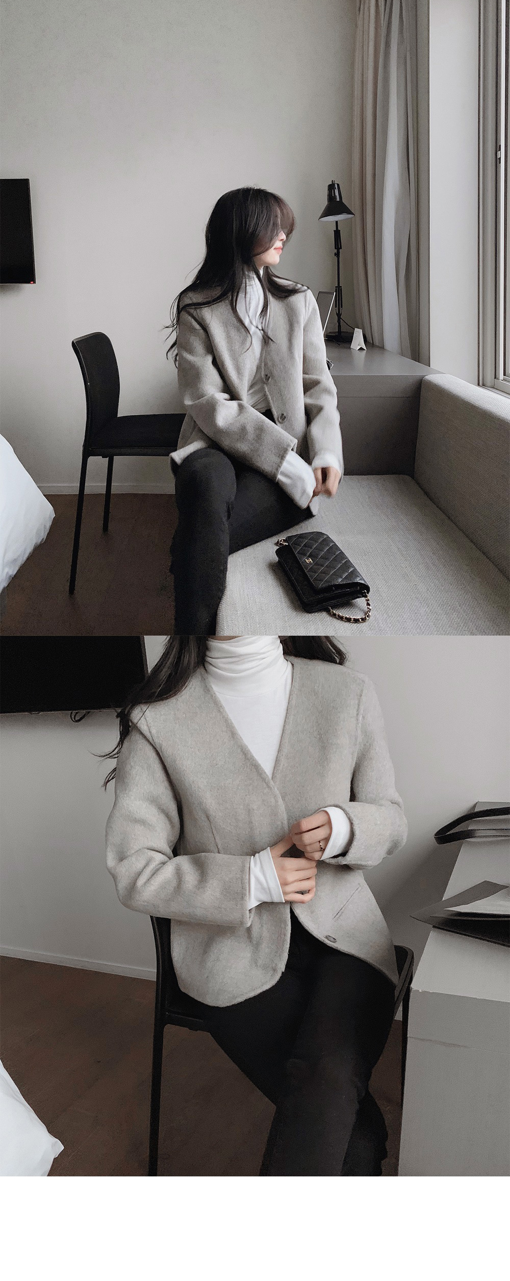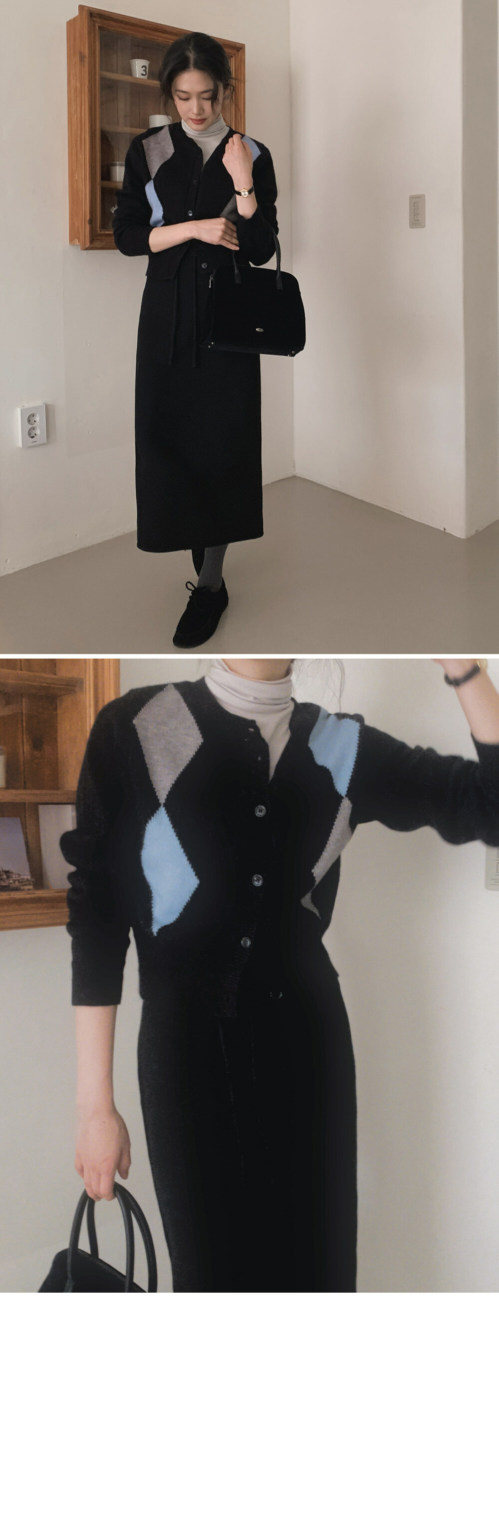 樽領: SD915 / Cardigan: FU1304 / 短裙: FU1227碳灰S(小鬆) / 長裙: SD1256 長版Free size(會鬆)