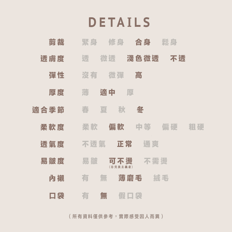 所有貨品不設退換,請一定要參考Size Chart