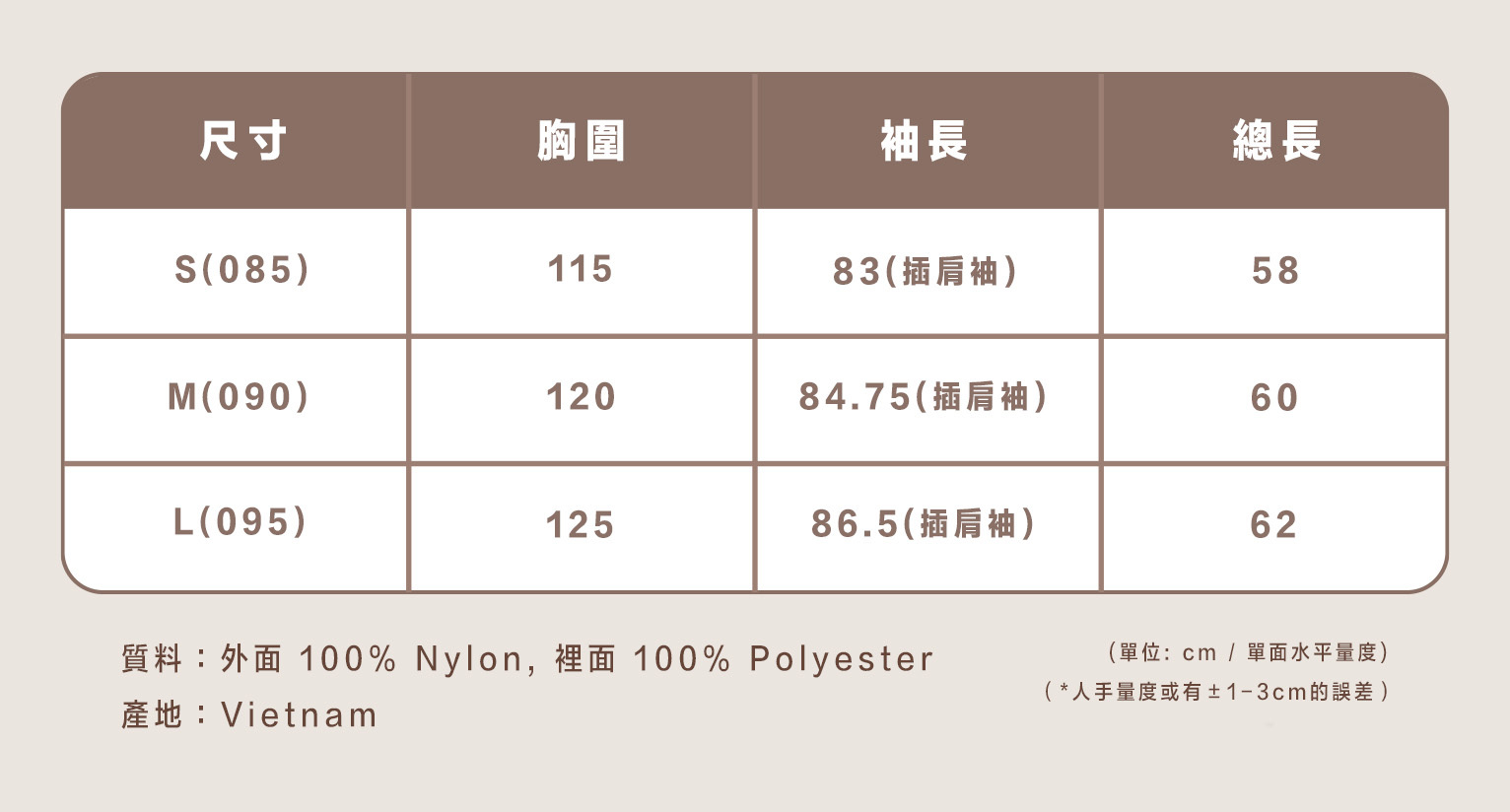 所有貨品不設退換,請一定要參考Size Chart