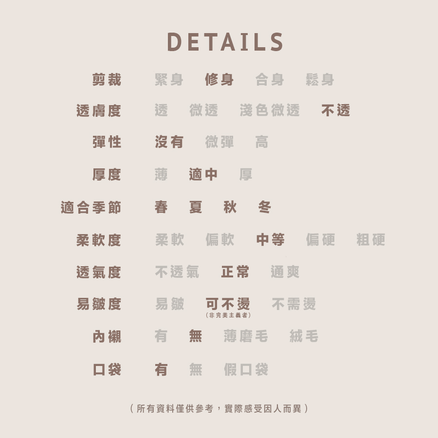 所有貨品不設退換,請一定要參考Size Chart